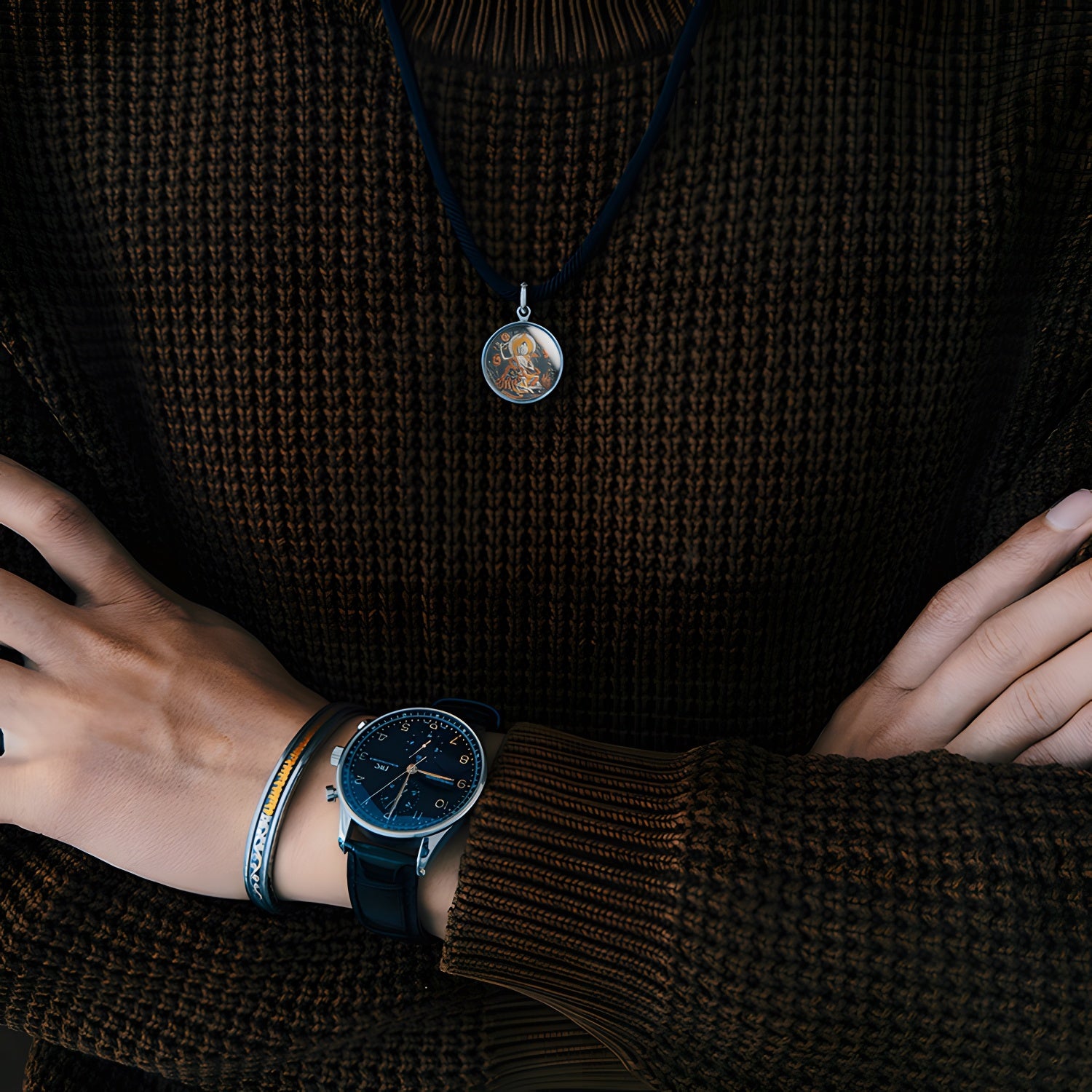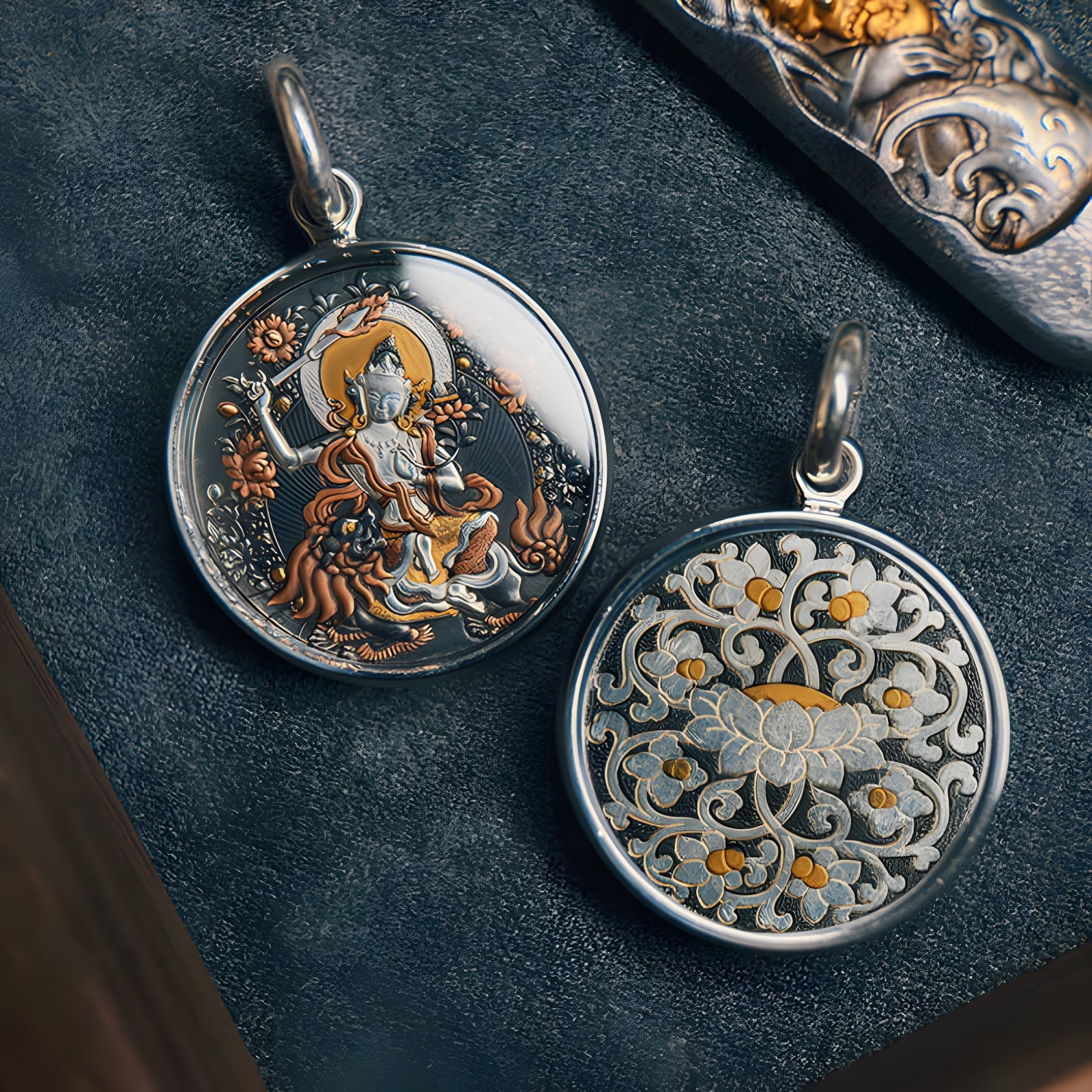 It incorporates a 2,700-year-old traditional iron-cut gilding technique, where the image of Prominent Figures of Tibetan Culture is meticulously engraved onto the original iron surface. Each piece is then finished by hand through a fusion of gilding and silver-inlay craftsmanship, achieving both spiritual depth and artistic precision.