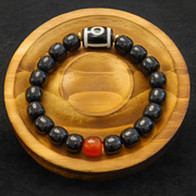 Tibetan Natural Agate Dzi Bracelet — 3A “Black Warrior” Two-Eye