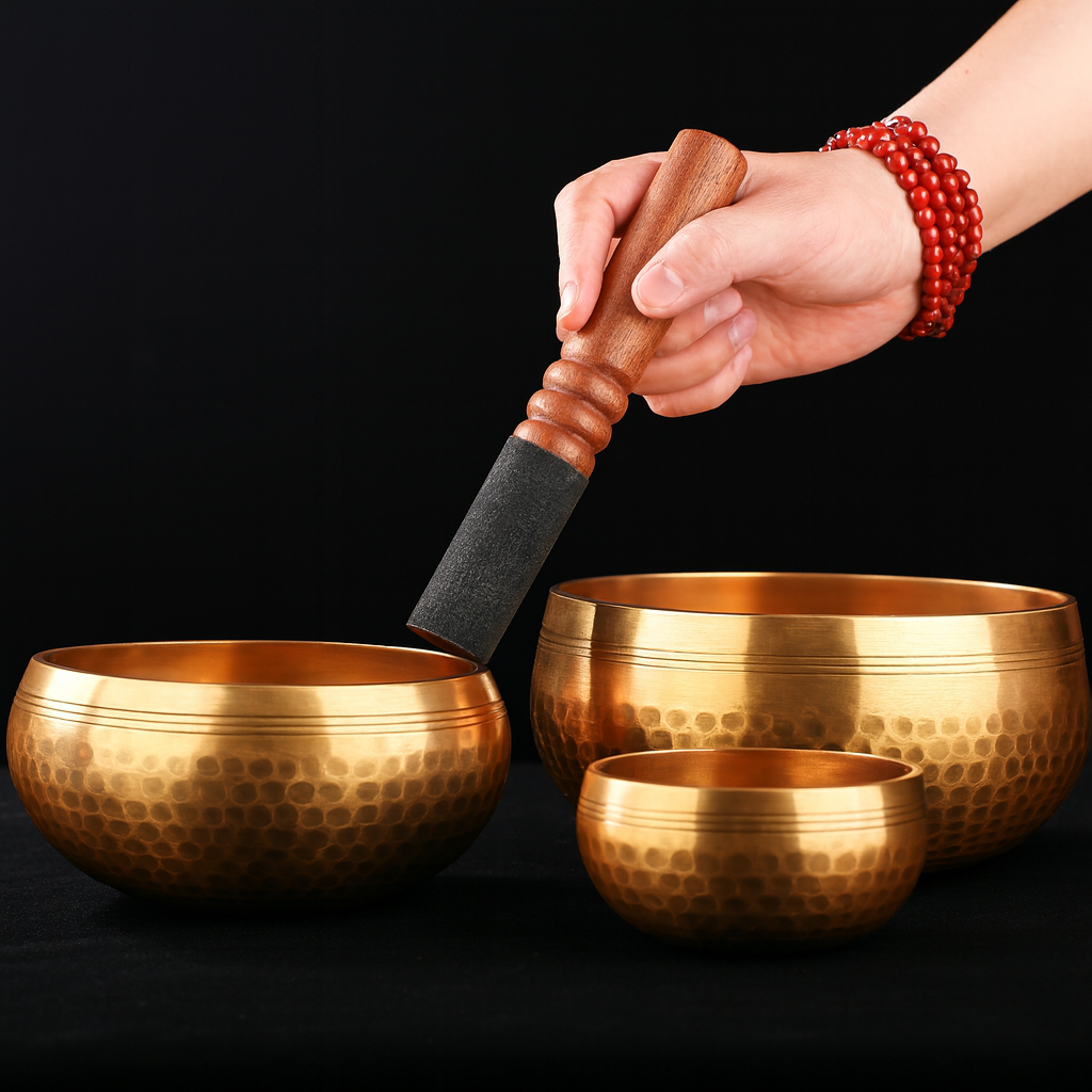 When the rim is gently played with a wooden mallet, the copper bowl produces rich, layered overtones that linger in the air and resonate through the body. This is more than music—it’s a physical vibration that synchronizes brainwaves, slows the breath, and naturally guides you into a meditative state.